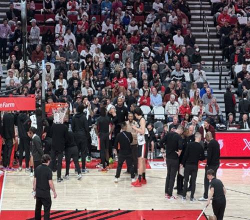 杨瀚森迎来了NBA生涯的常规赛首秀,开拓者官方社媒更新动态,比赛间隙,养伤中的利拉德对杨瀚森面授机宜,耐心指导杨瀚森。