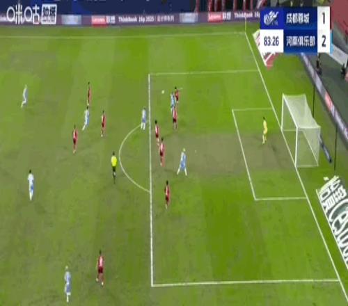 第83分钟,何超不停球直接在禁区外轰出超级世界波,帮助河南2-1反超比分!