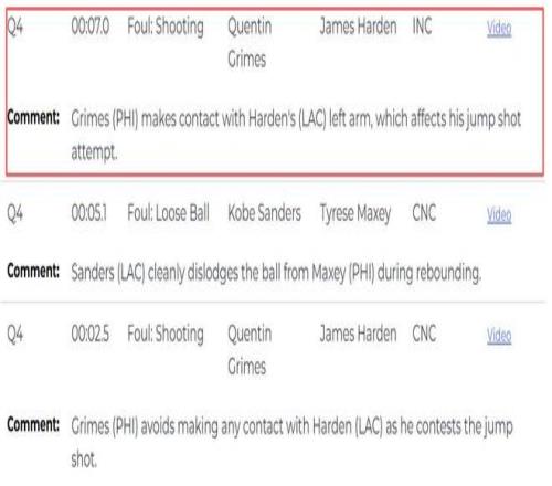 针对快船108-110不敌76人队的比赛,NBA给出裁判报告,确认最后2分钟出现三次错漏判,其中就包括漏判可以决定比赛胜负的哈登三分绝杀被打手。
